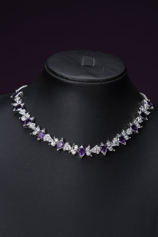 NJNS132 - Purple Diamante Necklace set
