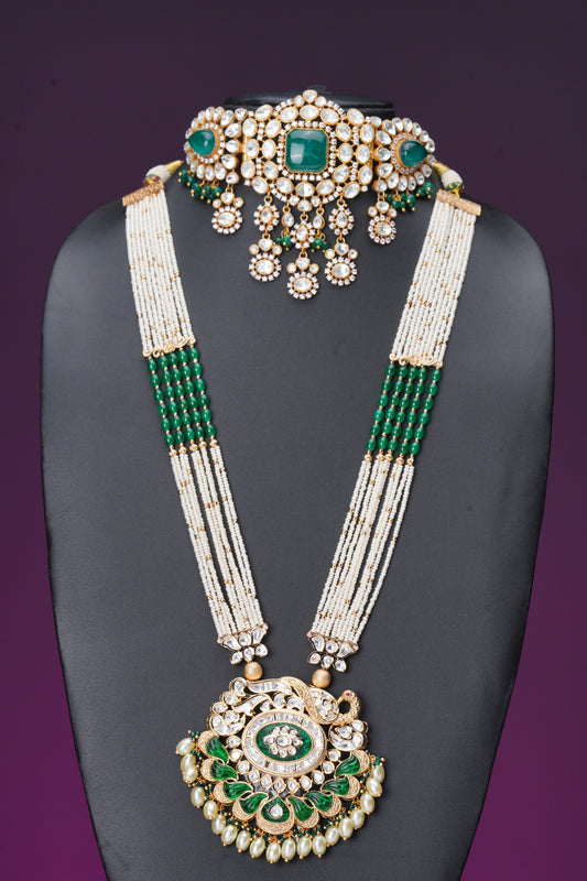 NJCM285 - Jadau Kundan with Fresh water pearl Layered set