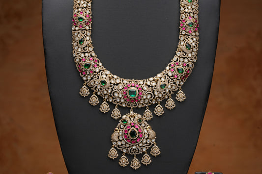 NJLS195 - Double peacock themed Victorian Kundan Necklace set