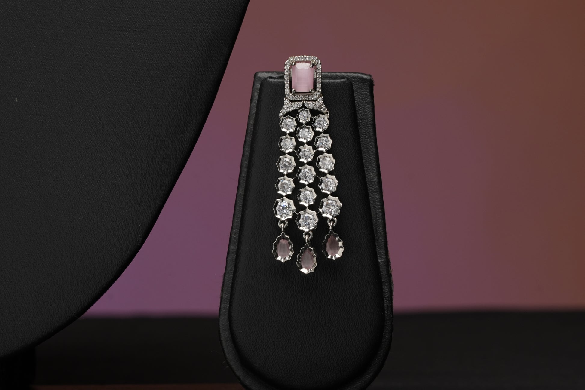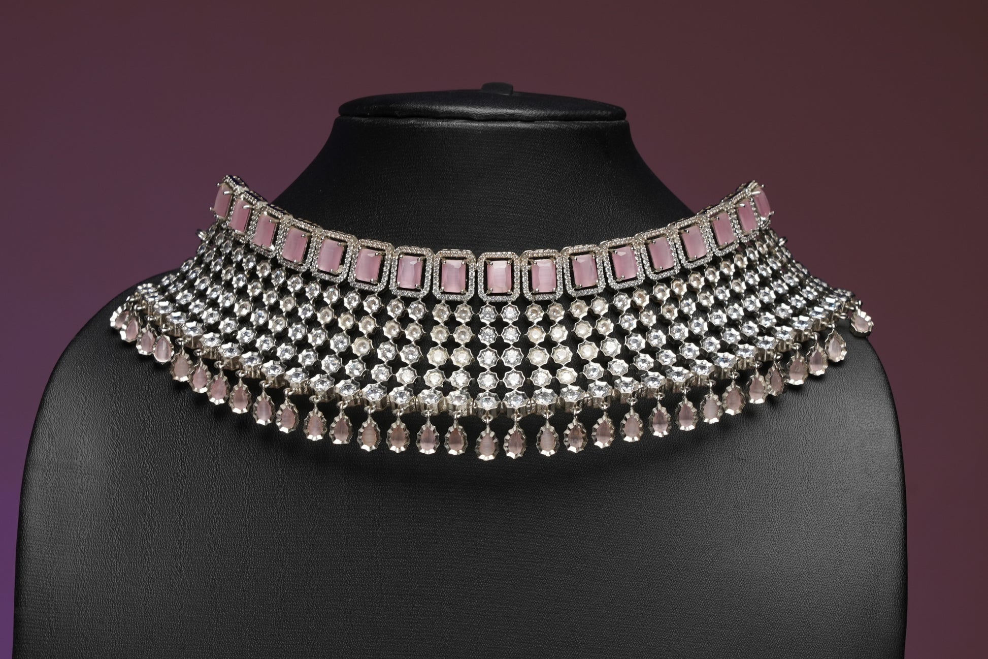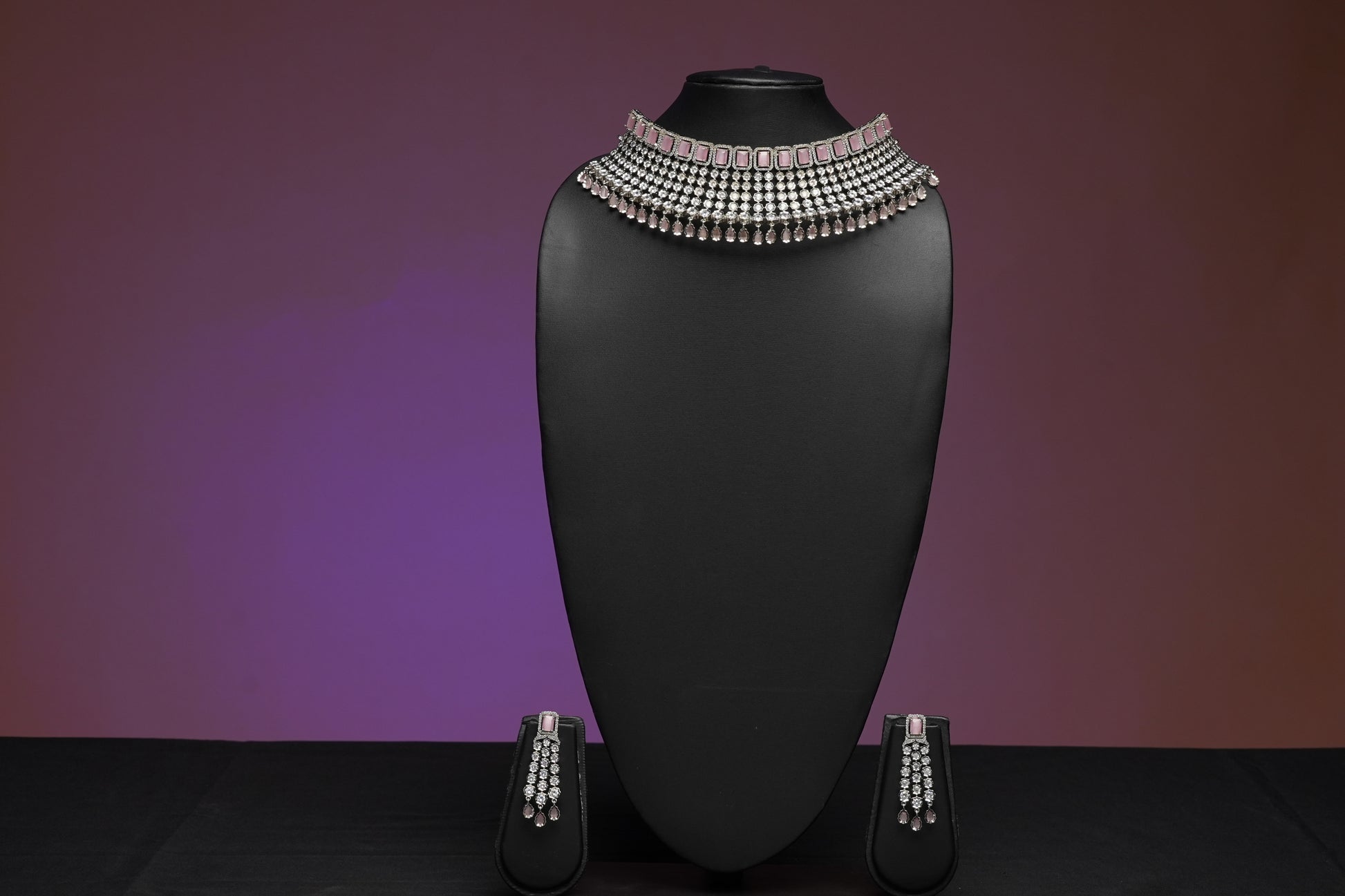 Elevate your style with our American Diamond set. This luxury set includes a stunning necklace, earrings, and mangtika adorned with sparkling American diamonds. Perfect for non-bridal occasions, this set will add elegance and glamour to any outfit. Upgrade your look with this timeless and sophisticated set.