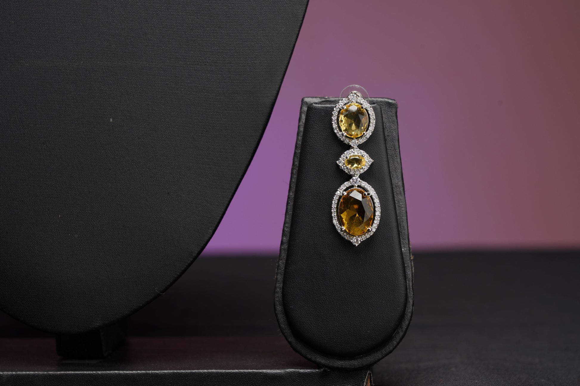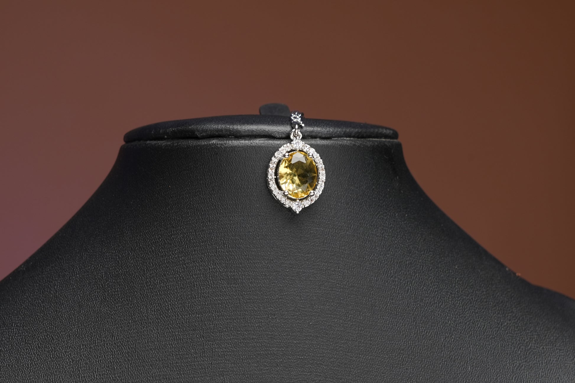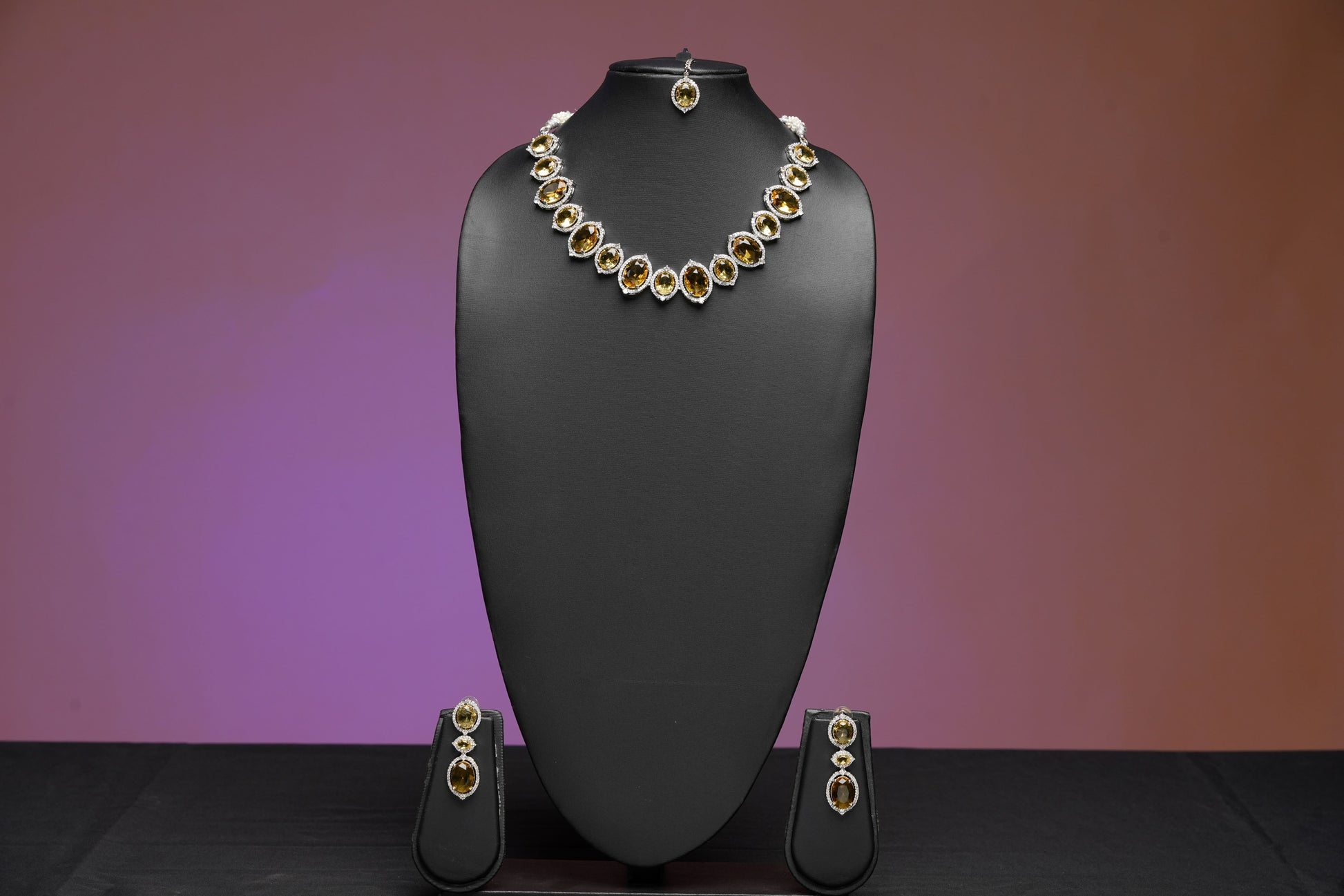 Add a touch of elegance to any outfit with our Yellow Faux Diamond Necklace set. Featuring a beautiful yellow faux diamond, this necklace set is perfect for any occasion. Its simple and elegant design is suitable for non-bridal events, making it a versatile addition to your jewelry collection.