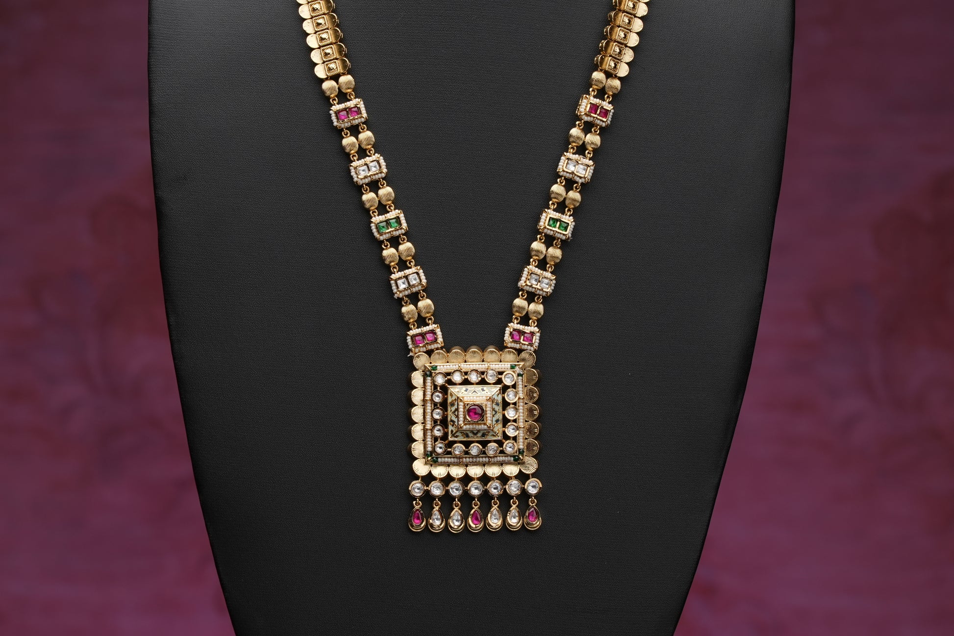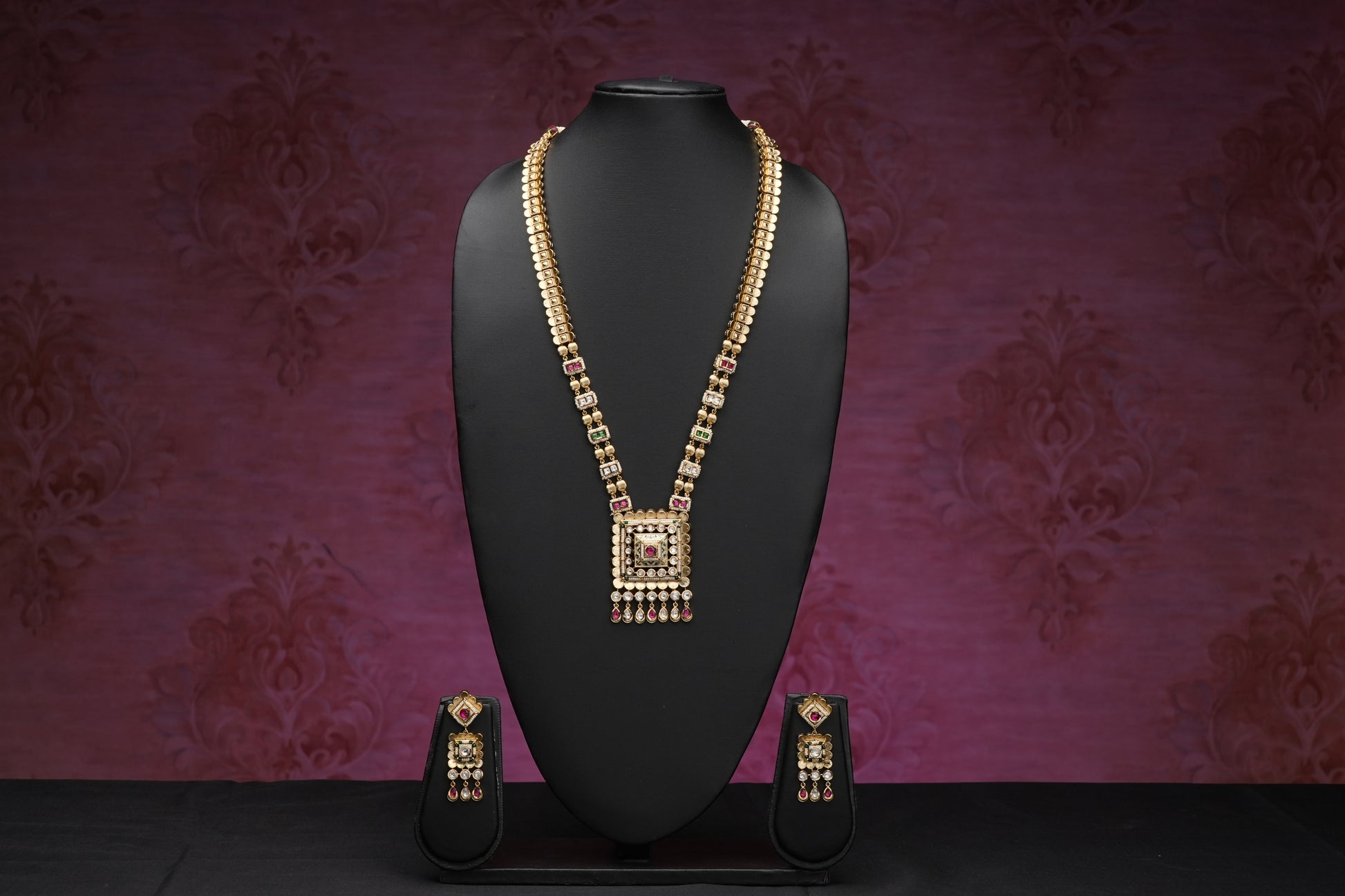 Elevate your style with our Mid Length Meenakari Necklace set. Designed for both bridal and non-bridal occasions, this set includes a stunning Rajwadi earrings and necklace with a Meenakari pendant. Adorned with intricate detailing, this set adds a touch of elegance to any outfit.