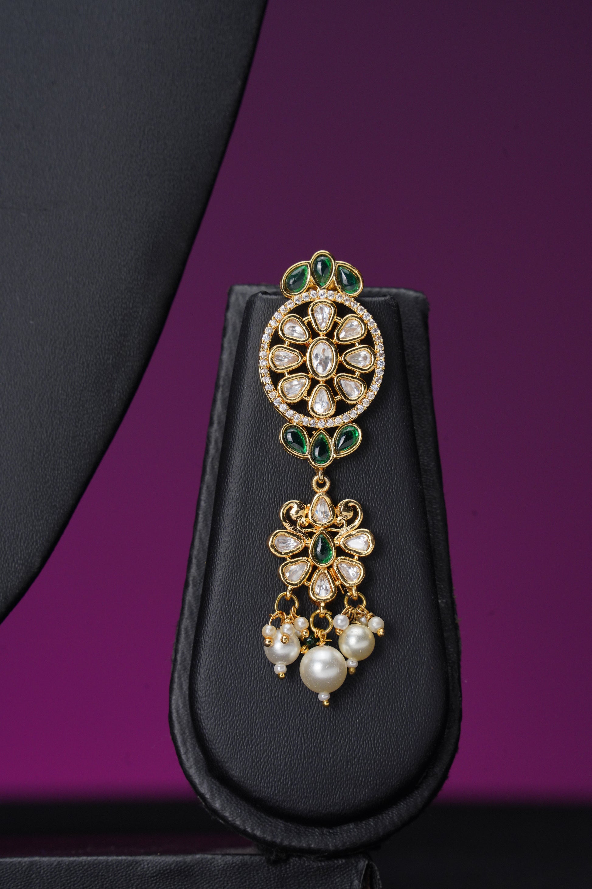 This beautiful uncut polki set is perfect for any non-bridal occasion. The intricate designs on the necklace, earrings, and mangtika add a touch of elegance to any outfit. Plus, the uncut polki stones provide a unique and stunning look. Elevate your style with this exquisite set.
